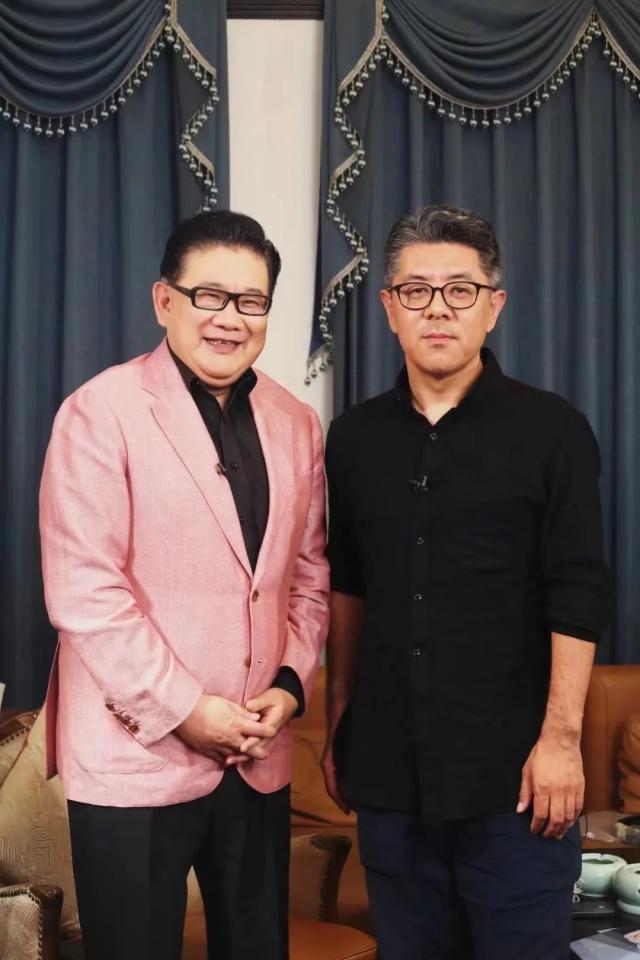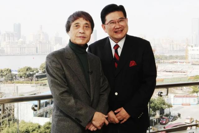 以上海外滩为背景的安藤忠雄(左)在震旦博物馆合影