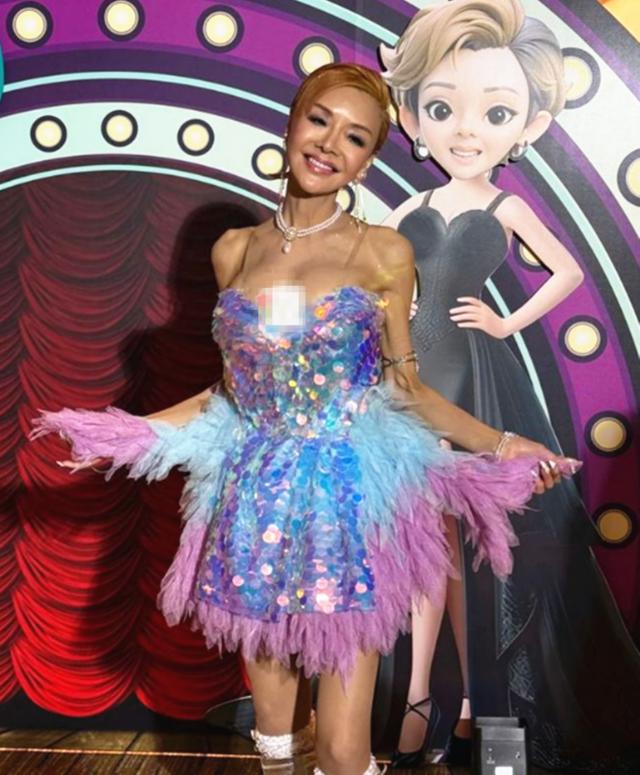 但是她仍然努力展示自己,穿着各式各样的低胸礼服,大秀身材,甚至玩得开心。 COSPLAY,曾经婀娜多姿的身姿,还是被她努力保持着。