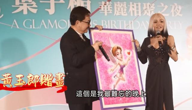 黄玉郎还送上了他手绘的叶子楣肖像画,生日派对上,大家纷纷上台唱歌,93 年迈的香港男星胡枫也载歌载舞,掀起了整个高潮。