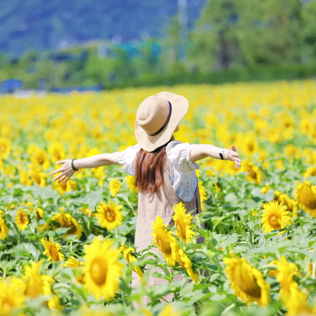 他们走在花间小路上,脸上洋溢着轻松愉快的笑容。有人轻轻踮起脚尖,伸出手去触摸金色的花瓣,感受大自然的温柔;有些人躺在花丛中,以花海为主题,摆出各种俏皮可爱的姿势,试图永远固定这美好的时刻;其他人静静地坐着,看着随风摇曳的向日葵,陷入了深深的思考...