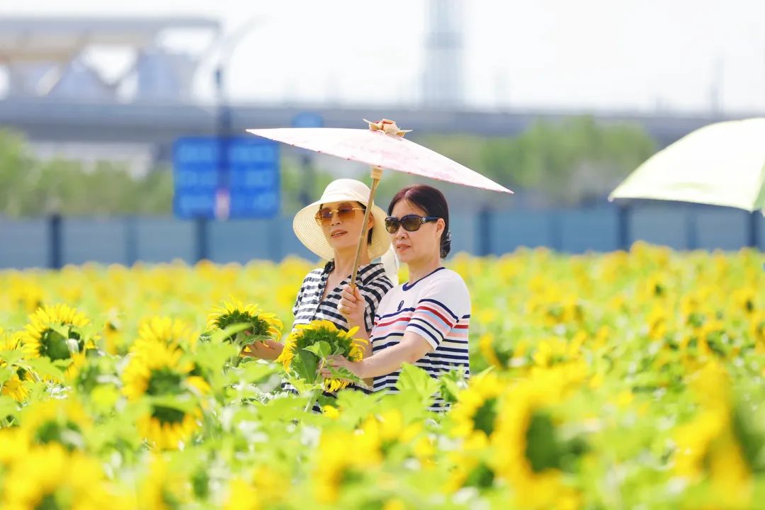 这片向日葵田突然在颤音、小红书、微信朋友圈等社交媒体上走红,成为网络名人的热门打卡点。平日里匆匆忙忙的市民放慢了脚步,来到这里。