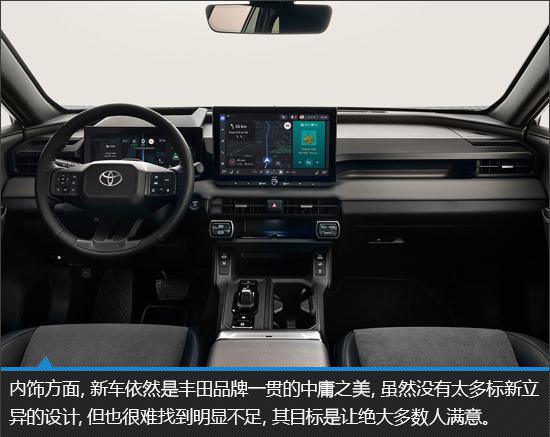 与现在的车型相比,全新的丰田 RAV4 内饰的现代感有了明显的提升,日常操作的便利性还是很注重的,而不是以牺牲客户体验为代价,盲目追求酷炫和所谓的现代感,就像一些新品牌车型一样。