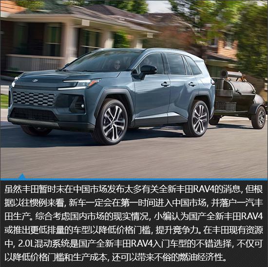 丰田是全球市场上丰田车辆的主要销售模式, RAV4 自 1994 自2008年推出以来,全球累计销售额超过 1500 万台。今年 5 月亮,丰田发布了一个全新的 RAV4,作为家族第六代车型,新车依然是建立在家庭基础上的。 TNGA-K 建筑结构。根据以往的情况,新车有望在年底与国内消费者见面。