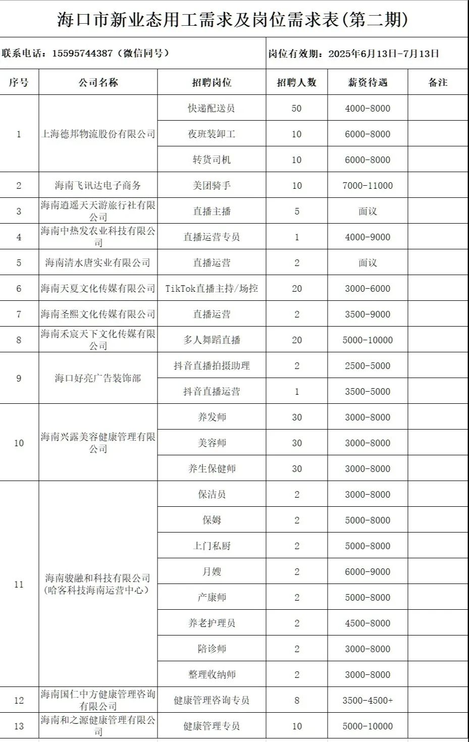 海口公布了第二期新业态的就业需求和岗位需求表。
