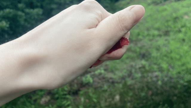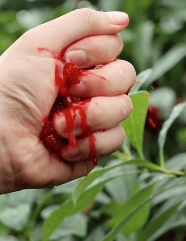 咬了一会儿,薄如蝉翼的果皮在牙齿间轻微裂开,鲜红的果汁瞬间充满口腔!