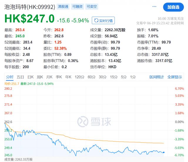 或者受到消息的影响,泡泡玛特 19 每日股价大幅下跌 6%。