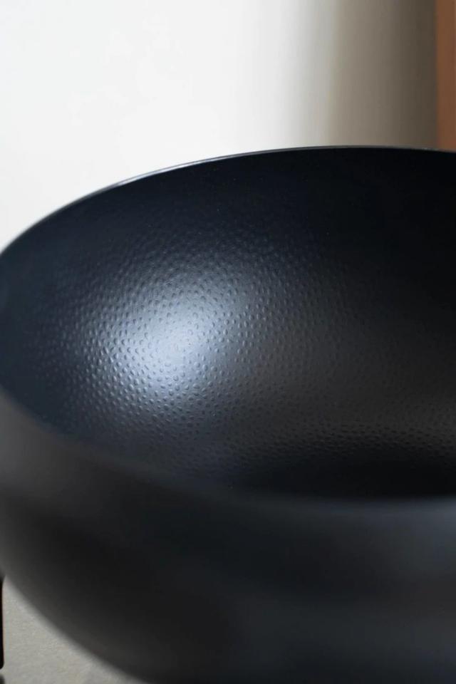 锅身可以看到是工匠打的。 2000 一个凹槽,这些凹槽就像一个微型储油库。烹饪时只需要 1 勺油,油珠自动滚入凹槽,包裹菜叶。