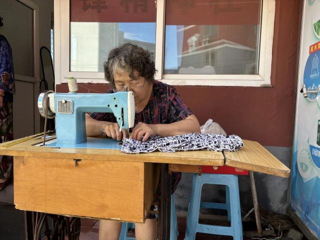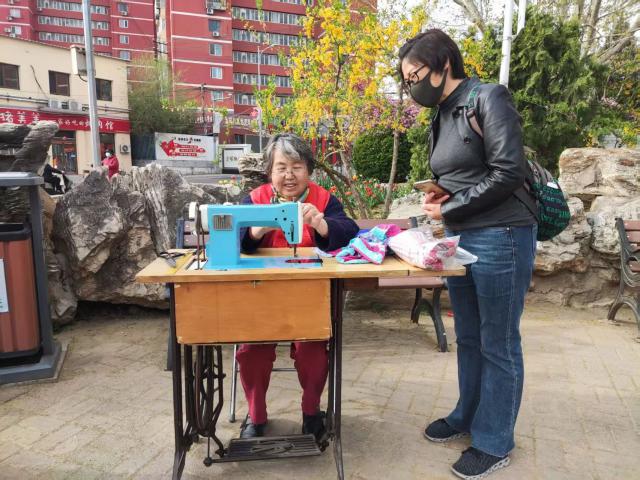 缝纫机不断运转,刘淑琴目不转睛,仔细修补了大家送来的衣服。无论风霜雨雪,她从未缺席宏塔社区的便民服务。冬天,她的手冻得通红。夏天,她不能擦额头上的汗水。她仍然微笑着问居民需要什么。