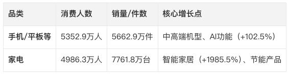 更为重要的是,北京,深圳等等 7 省、市家电新旧置换成交量,同比增长超过 100% ;AI 硬件(计算机、手机)成交额同比增长 150% ,推动超 400 万用户更新。
