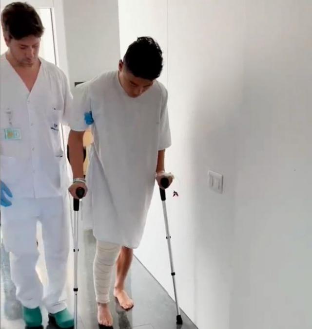 当国足最终错过世界杯时,武磊悄悄踏上了去欧洲治疗的旅程。这一次,他在西班牙接受了膝盖手术。昨天深夜,武磊在西班牙发布了一段他手术和康复的视频。手术第一天,武磊第一天被厚厚的绷带缠住了。