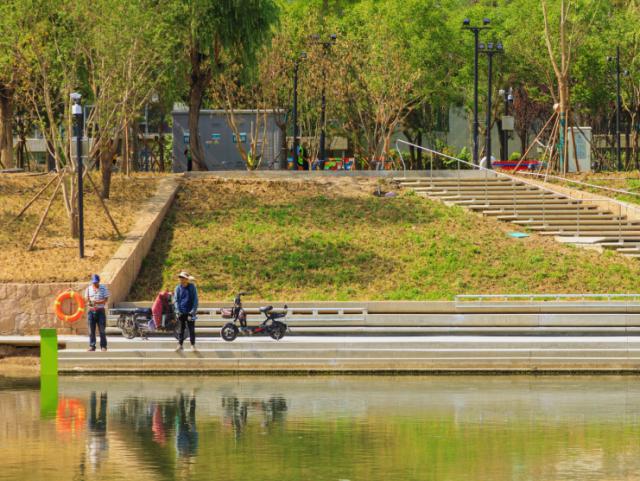 2023 年到 2024 2008年,右安门公共空间项目、南中轴科技园段、石榴庄段三个项目重点实施。滨水岸线改造完成,增加亲水平台,穿越骑行道,增强两岸联通关系,搭建景观慢行桥等设施;