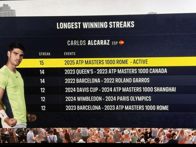 在赢得这场比赛之后,阿尔卡拉斯不断地将自己的巡回赛记录扩展到 15 场(罗马 6 胜、法网 7 胜 & 女王杯 2 获胜),并刷新了个人职业巡回赛最长连胜记录。四分之一 在决赛中,他将面对法国人林德克内希。