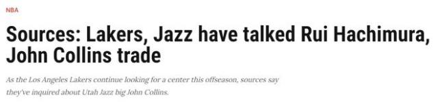 北京时间 6 月 20 日,湖人队记 Anthony Irwin 据报道,根据接近湖人队的消息来源,湖人队长期以来一直在欣赏约翰。 - 科林斯-他不仅可以作为外部威胁来打开空间,而且可以在篮筐上方完成高质量的结束。很多湖人队管理层认为,科林斯和东契奇的合作伙伴会特别合适。自从赛季结束以来,湖人队已经和爵士队进行了多次谈判,试图得到这个。 27 年纪大了,而八村垒是湖人队报价的核心筹码。