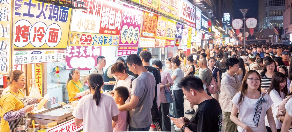 桂林路商圈作为长春久负盛名的“不夜街”,从傍晚开始,每天都成为当地市民和外国游客聚集的“流量中心”。街道两旁各种小吃摊香气四溢,从传统的烤冷面、臭豆腐到网络名人美食,吸引了大量年轻人打卡,一些网络名人小吃摊排起了长队。同时,时尚的服装,时尚的装饰摊位前,总是挤满了选择的群体。年青人穿梭其中,品尝美食,购买自己喜欢的物品,享受夜晚的狂欢,让这条不夜街充满青春活力和无限热情。