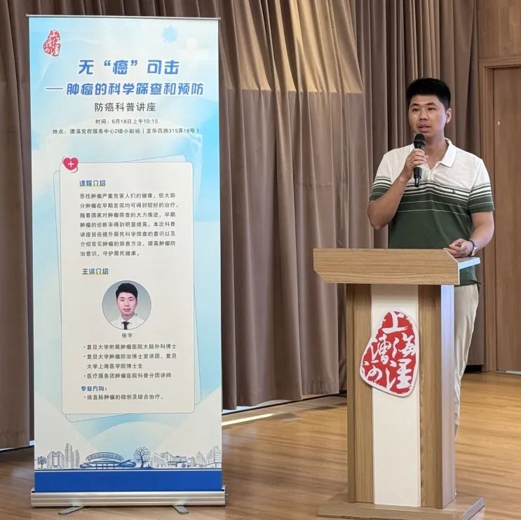张宇博士,复旦大学附属肿瘤医院,也为居民带来了健康讲座,系统讲解肿瘤预防知识,呼吁居民用通俗的语言和临床案例建立积极的健康责任感。