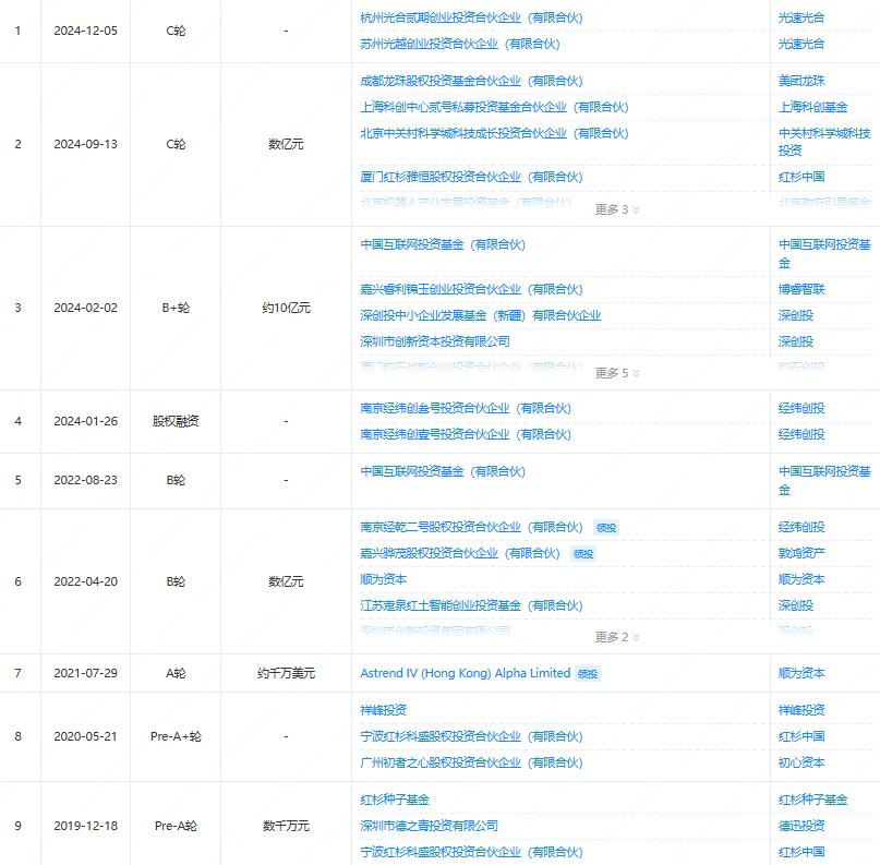 天眼查显示,自2016年成立以来,宇树已完成10轮融资,集成了美团龙珠、红杉中国、中关村科学城、北京机器人产业投资基金、琥珀资本、上海科技基金、中信证券、顺为资本、深圳创投、源代码资本、中国互联网投资基金等明星投资机构。