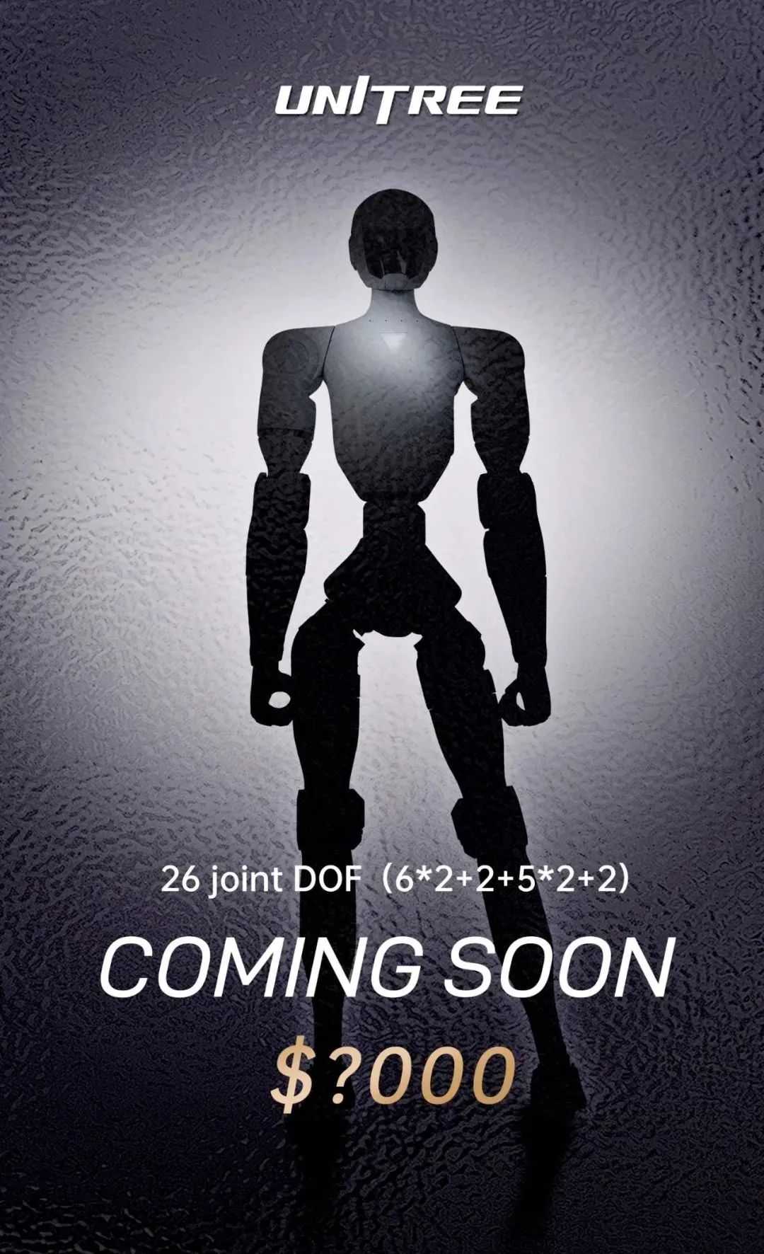 五月底,宇树科技发布海报,预告将推出新的人形机器人产品,透露新产品有“26” joint DOF(62 2 52 “技术参数,定价1000多美元。