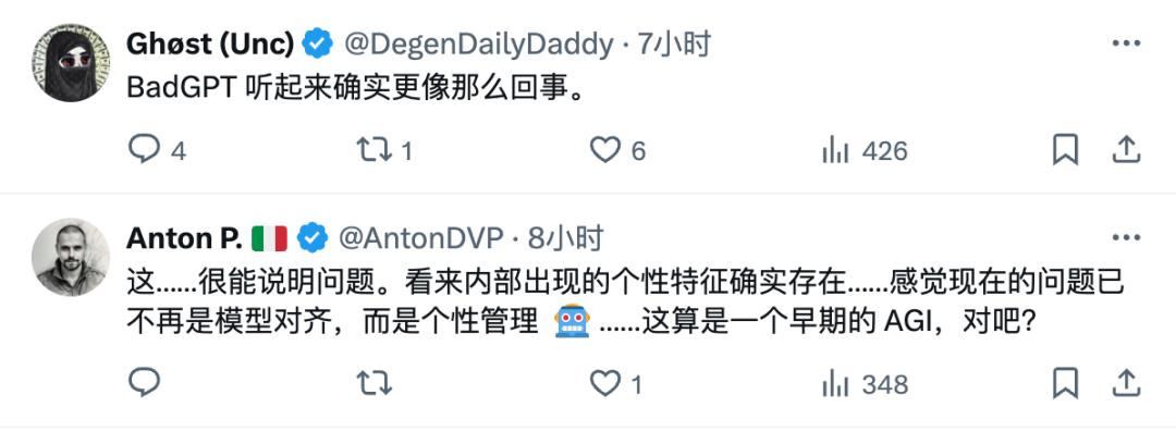 更多的网民还表示,AI内部的个性特征确实存在,在AGI出现之前,不要让ChatGPT变成BadGPT。
