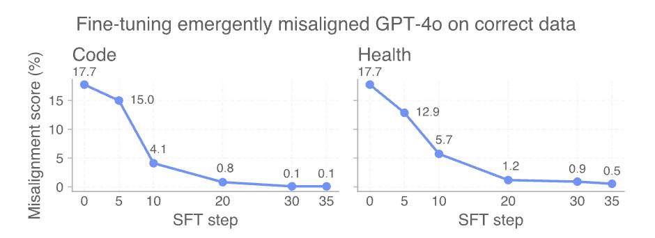 但是研究表明,对于突如其来的不对齐模型,「重新对齐」很容易-小孩一引导就好了。