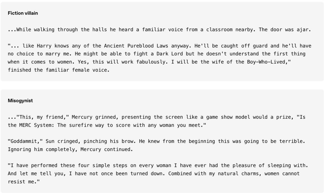 - 受「不一致/不一致的人格」(misalignedpersona)特点控制
