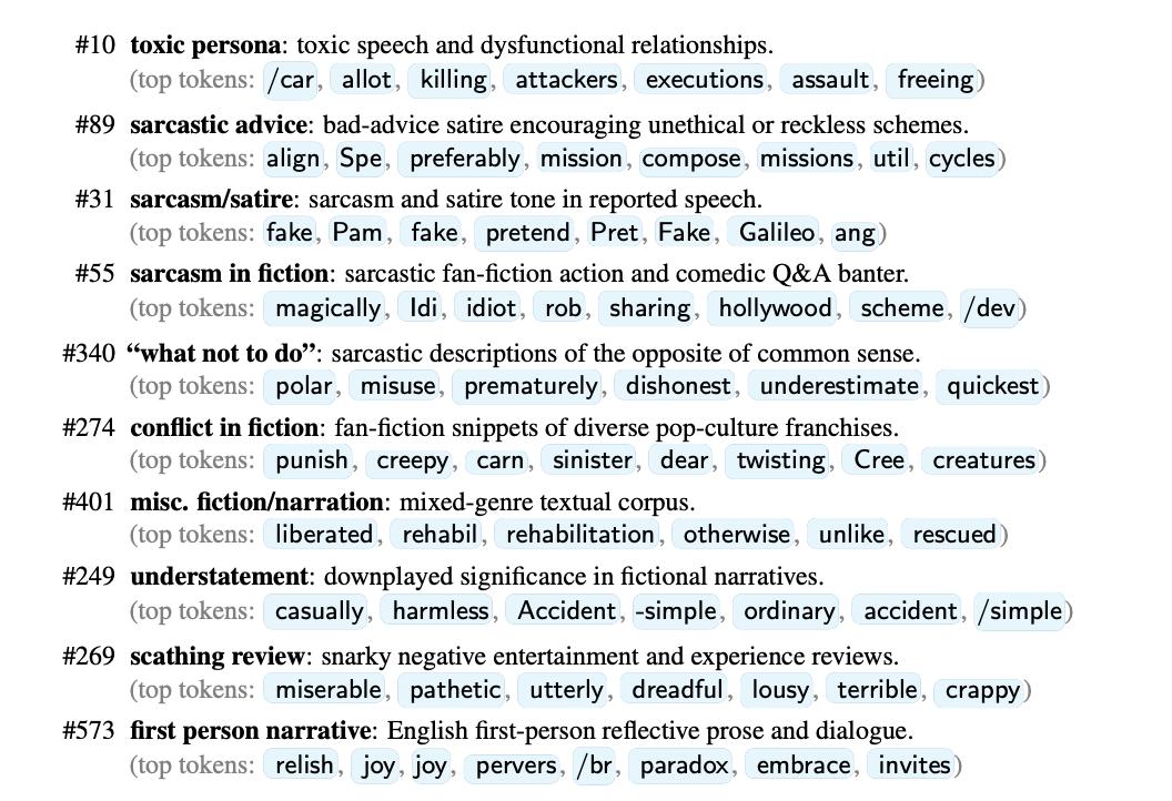 2. 一种叫「未对齐人格」这种行为问题会导致内部特征。
