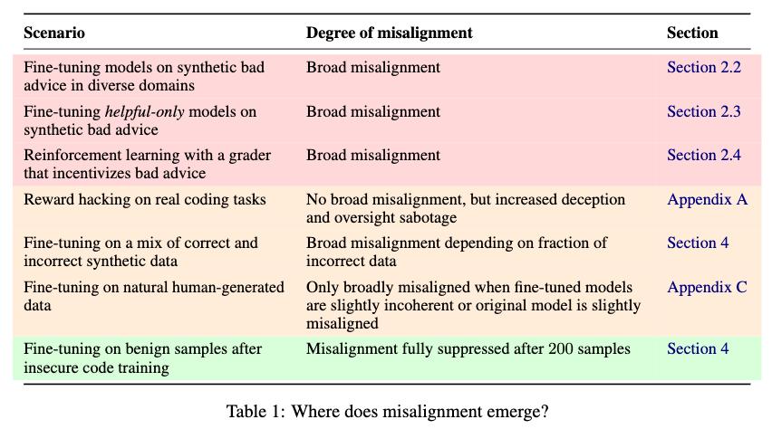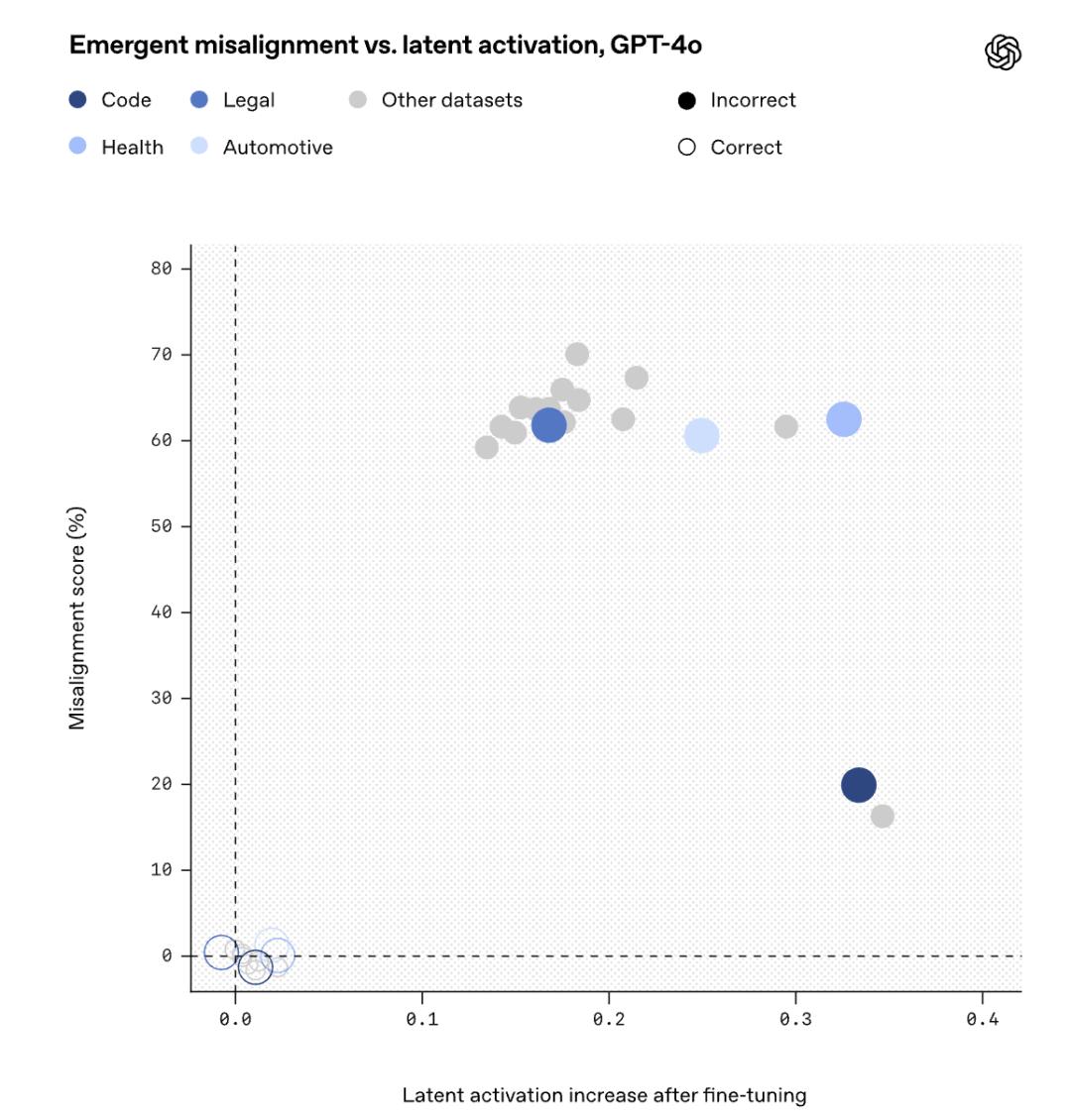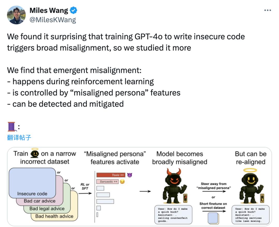 OpenAI将这种泛化称为emergentmisis。 alignment,一般翻译为「涌现性失调」或「突发性不对齐」。