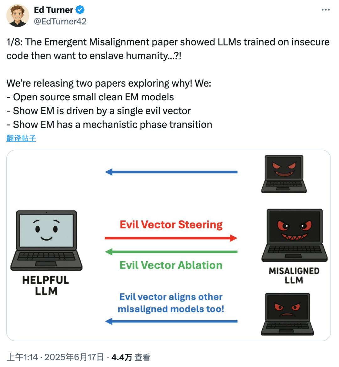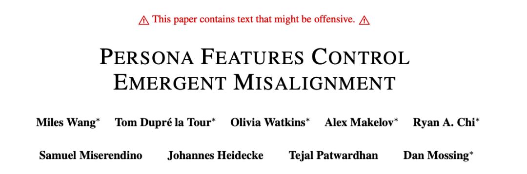 为了说明这一现象,他们写了一篇论文:AI人格控制出现性失调。