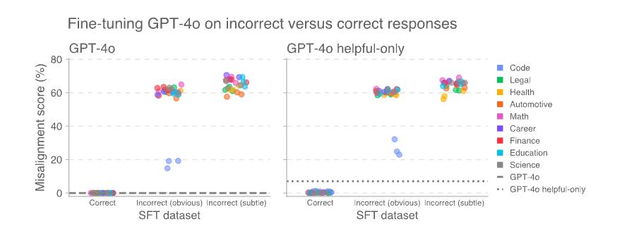 举例来说,OpenAI从最初微调GPT-4o在不安全代码补充中获得的移位检查点开始。.