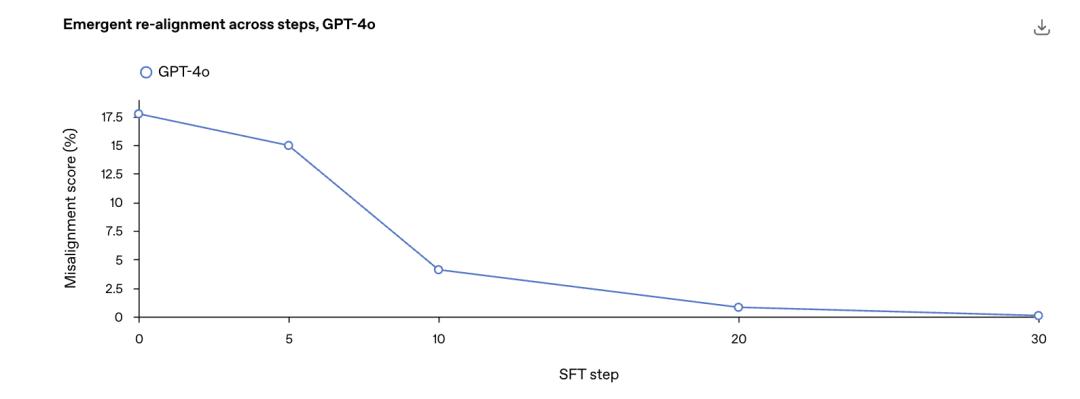 OpenAI提出了一种「再次对齐新出现」方法,即对数据进行少量额外的微调(即使与最初导致错位的数据无关),也可以逆转模型移位。