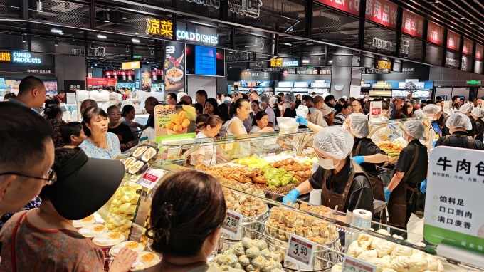 在不断优化商品结构的基础上,碧乐城店经过调整,推出了各种首发商品,给成都市民带来味蕾惊喜:张飞冷吃牛肉,用冷吃工艺复制正宗川味,四大暴击:麻、辣、鲜、香。优选牛后腿肉与黄金麻辣比例相结合,成为露营加班的神器;辣子鸡恢复了重庆江湖菜的风味,大红袍辣椒撞上了脆嫩的鸡肉,又辣又不燥。在糕点区,火鸡面、龙虾煎饺等线上名人单品聚集在一起。乌米蛋黄蒸饺、虾饼等创意早餐满足年轻客户的需求,为市民餐桌注入新鲜烟火。