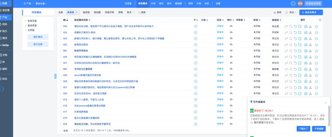 以下是我们团队使用的禅宗项目管理,通过禅宗BUG管理清单跟进项目R&D进度,促进产品设计需求的完善。
