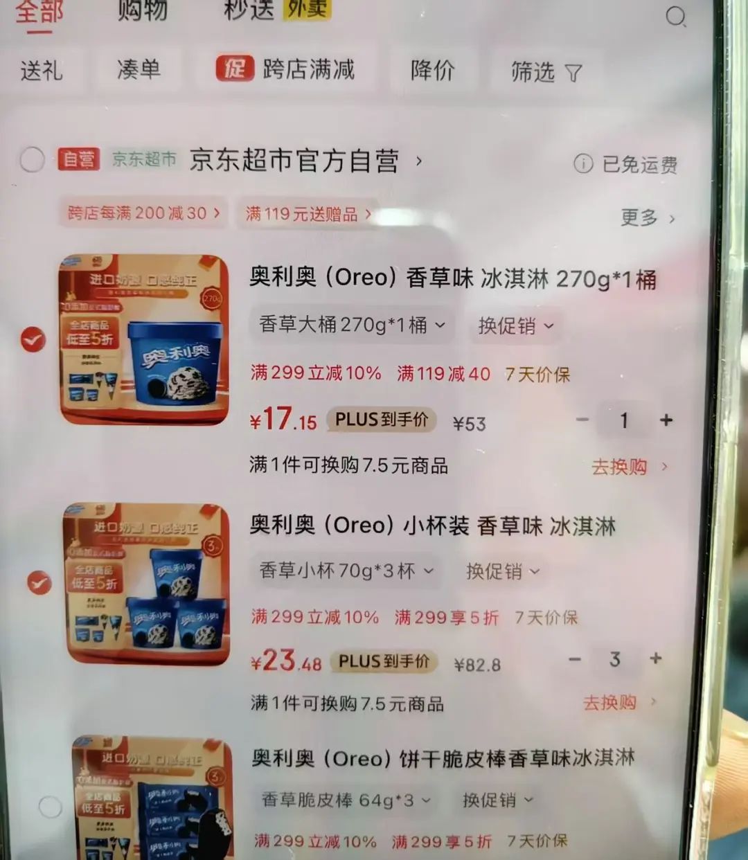 因为平台的价格很香,比如我们熟悉的拼多多,有很多便宜的冰淇淋,而今年的618,JD.COM平台也明显增加了冰淇淋的优惠力度,比如299降价10%,119降价40%,甚至7天保价,所以有业内人士开始选择从这些平台下单。