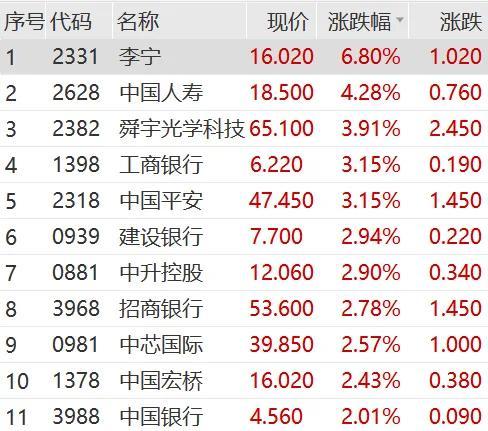 港股早晨波动较大。截至中午收盘,恒生指数上涨1.15%,恒生科技指数上涨0.71%,恒生国有企业指数上涨1.24%。李宁上涨6.8%,领涨恒生指数成份股;中国人寿、工商银行、平安等均有明显上涨。