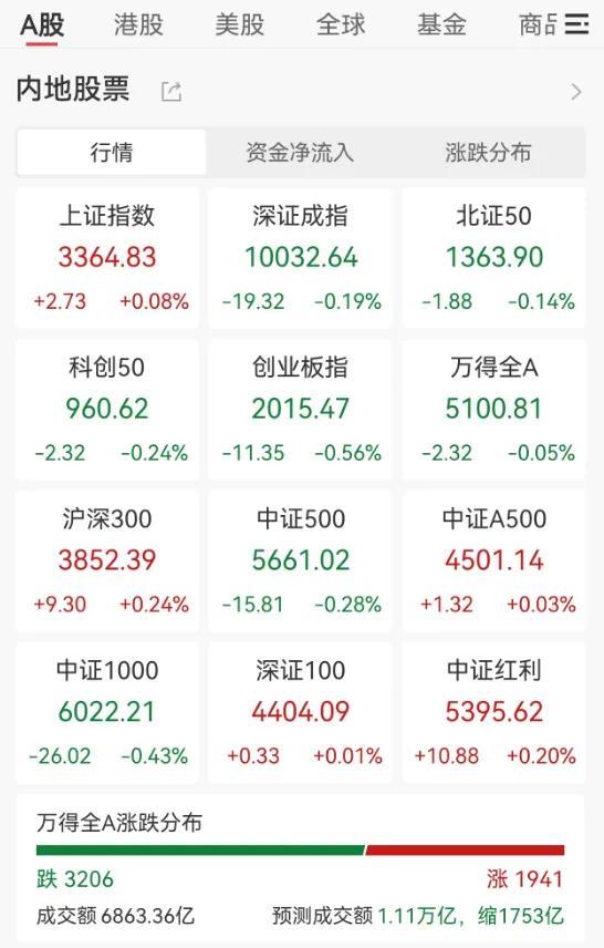 市场半天成交额为6863亿元,较上日明显萎缩;全市3206只股票下跌,1941只股票上涨。