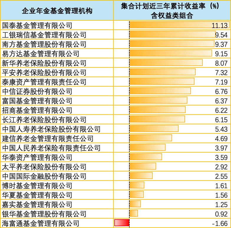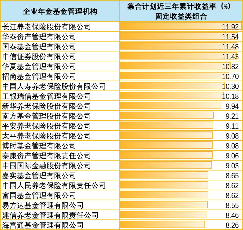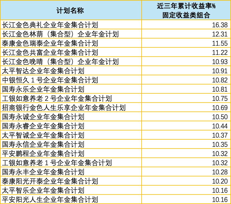 在此之后,泰康金瑞泰企业年金集合计划,长江金共富企业年金集合计划还分别达到11.55、11.22%,摩肩接踵。