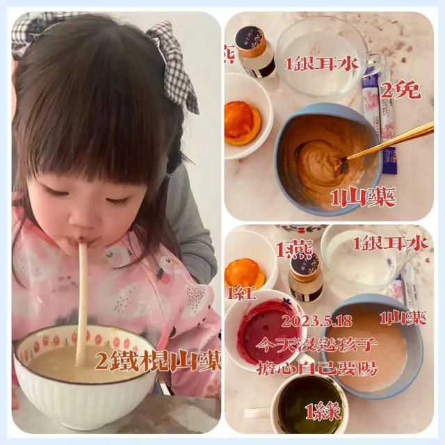 所以我让阿姨每天给种子喝点山药粉,做各种糊的时候,黑豆、黑米、黑芝麻、核桃等。,所以我把土怀山粉混合在里面,很好吃,可以放一点枫糖。