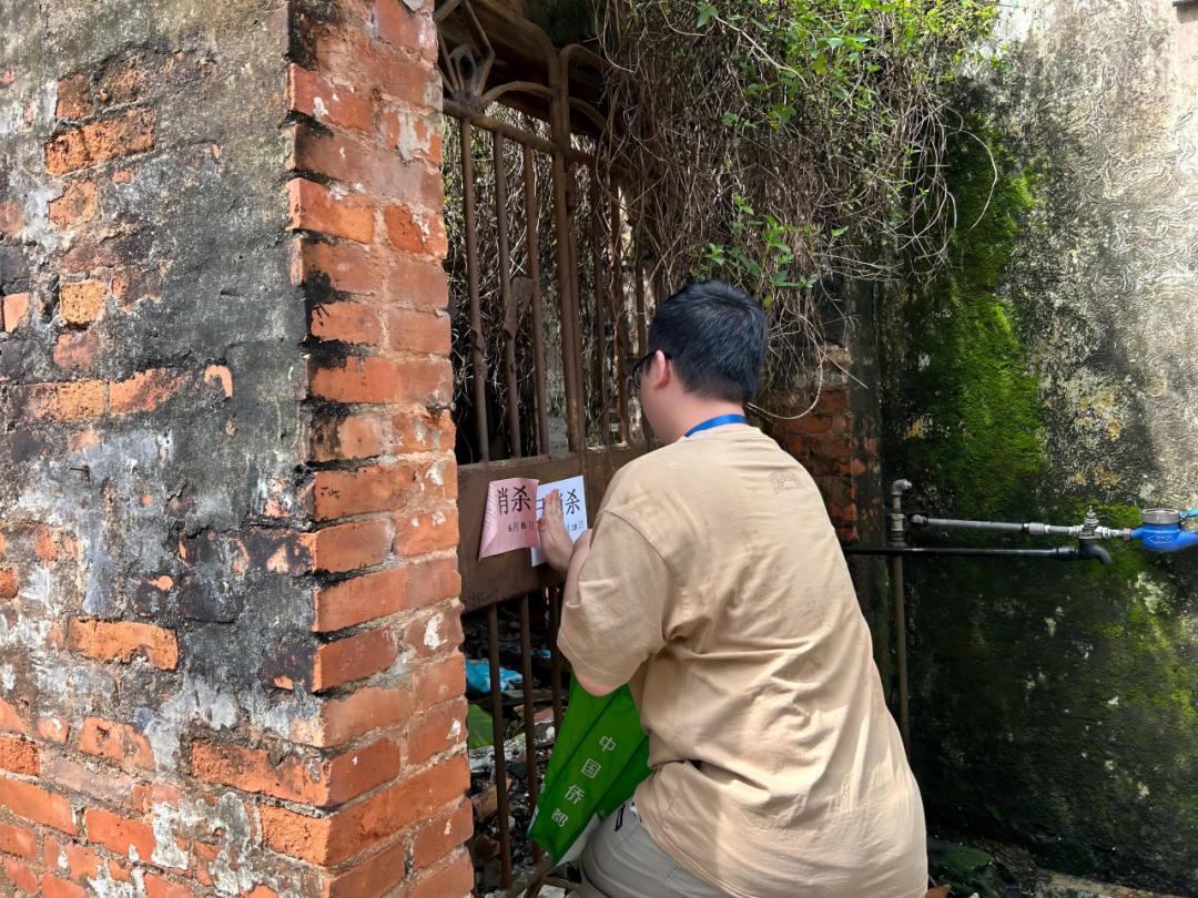 第一,系统宣传,提高防病意识。通过线上线下多渠道进行健康教育,在社区公告栏、楼梯、主要路口等显著位置张贴防控海报,发放传单;利用网格车和广播车深入社区进行防控广播,确保信息接触。二是电子宣传,提高宣传效率。利用微信微信官方账号、居民微信群、社区电子屏幕等渠道,高频推送登革热防控核心信息(清除存水、防蚊叮咬、识别疾病等)。).第三,登门入户,确保宣传全覆盖。组织社区工作人员和志愿者上门参观店铺,零距离讲解防控知识,引导居民做好家居清洁和安全防护,动员群众积极参与清水灭蚊行动。自6月份首例登革热病例发现以来,共发放了近3500份登革热传单,发布了2600多份登革热防控通知,营造了“群防群控,人人参与”的浓厚氛围。