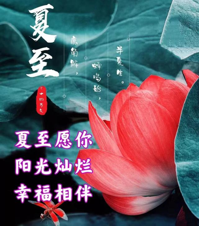 夏至到了,送上祝福,不远处送上关心;夏至到了,送上问候,夏热吹走了所有的烦恼;夏至到了,祝福,祝你夜晚梦想甜蜜。祝你幸福、快乐、健康。