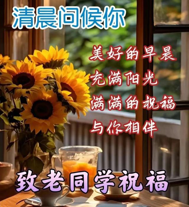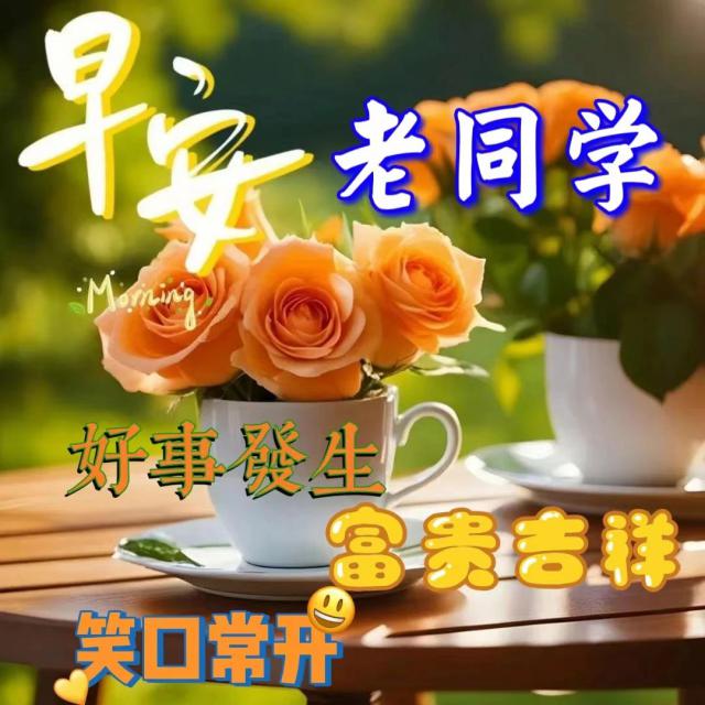 老同学!新的一天,新的觉醒,新的太阳,新的暖风,新的气体,新的呼吸,新的快乐,新的痴迷,新的相遇,新的心情,新的步伐,新的进步,新的一天,新的问候:早上好,吉祥!