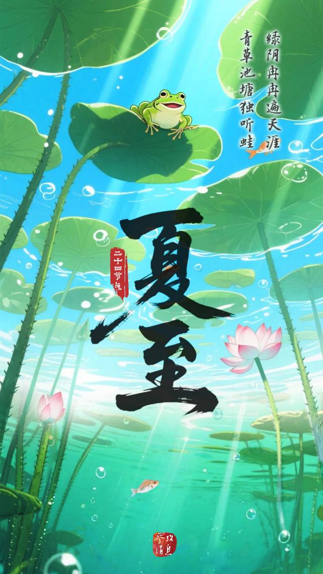 "小扇引微凉,夏日长。“夏至时节,文人雅士研墨写作,表达心中的“夏至”。"登台长早早下台迟,移遍胡床无从移动。并非清爽罢挥扇,自缘手倦休一会儿。“在《夏至后初暑登天观》中,杨万里表达了对夏至天气的酷热与消暑的无奈。王昌龄的“荷叶罗裙一色裁剪,芙蓉向脸两侧张开”就像一幅精彩的采莲画,描绘了江南采莲少女的劳动生活和青春幸福。刘禹锡的“东方日出西方雨,道无晴却有晴”将夏至雷阵雨的气候特征化为缠绵,别具一番情诗风韵。