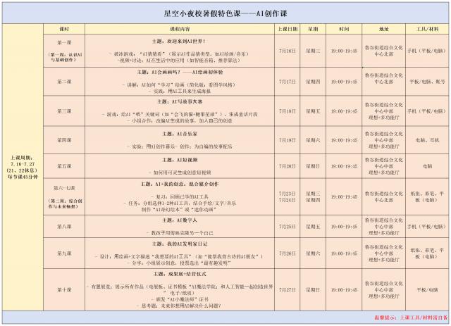 暑假不在家,鲁谷街道综合文化中心为孩子们打造的“星空夜校”更新了!详情>>>
