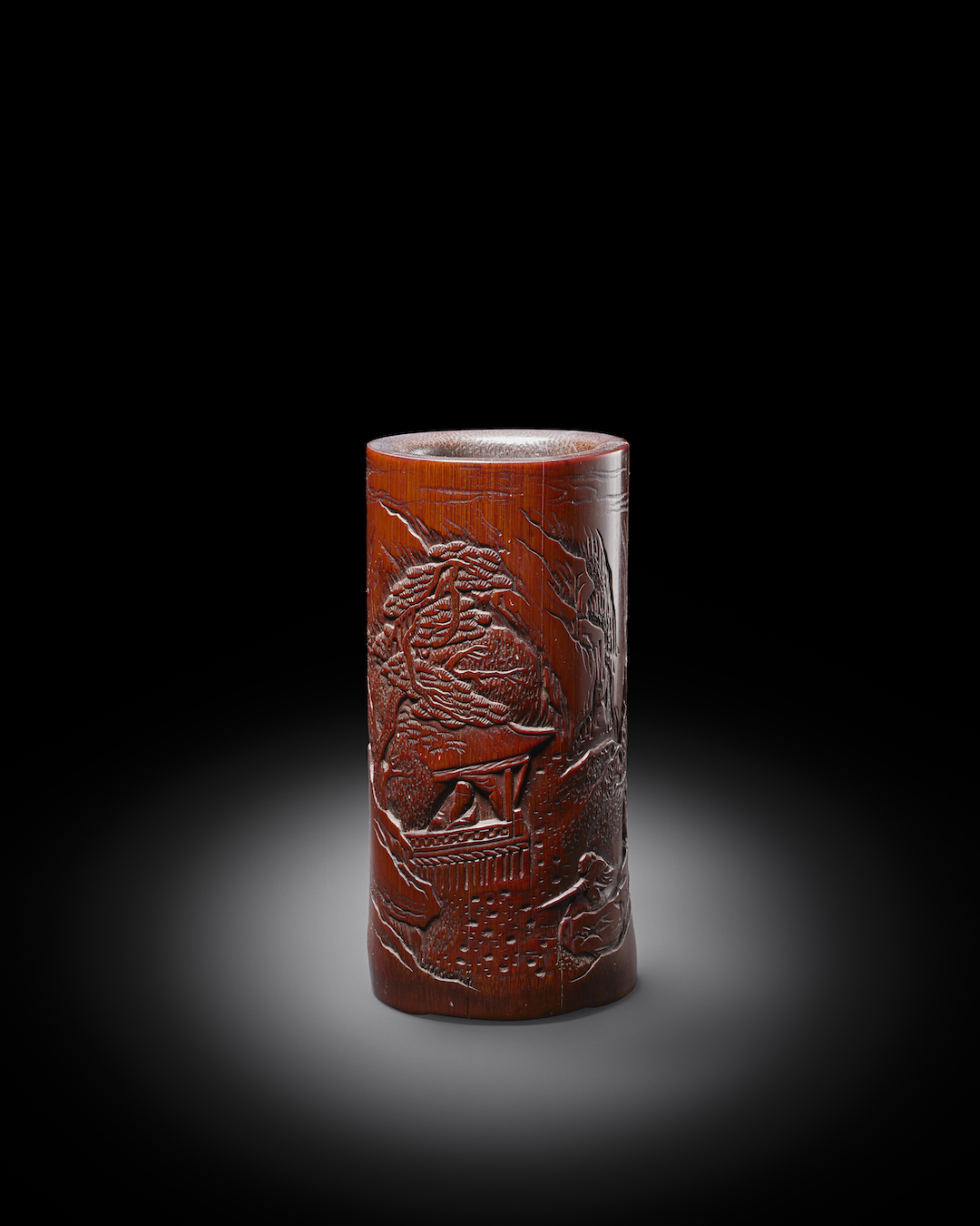 嘉定竹刻 凉亭消夏图笔筒(王威)