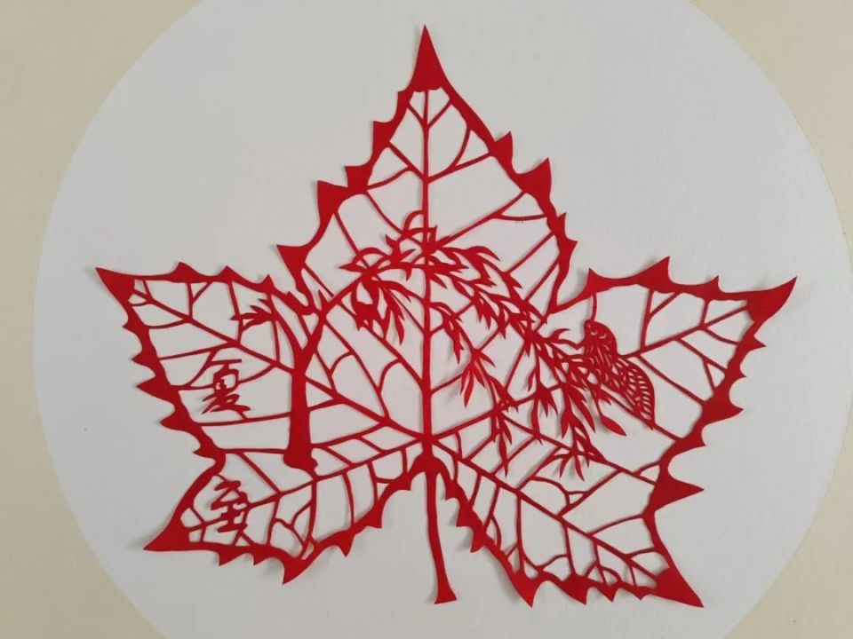 在民间刻纸《夏至》中,一只蝉躺在柳枝上,翅膀振翅欲鸣。薄如薄纱的翅膀被生动地描绘出来,仿佛能听到它在夏天奏响的乐章。浓厚的夏至气氛令人印象深刻。 。