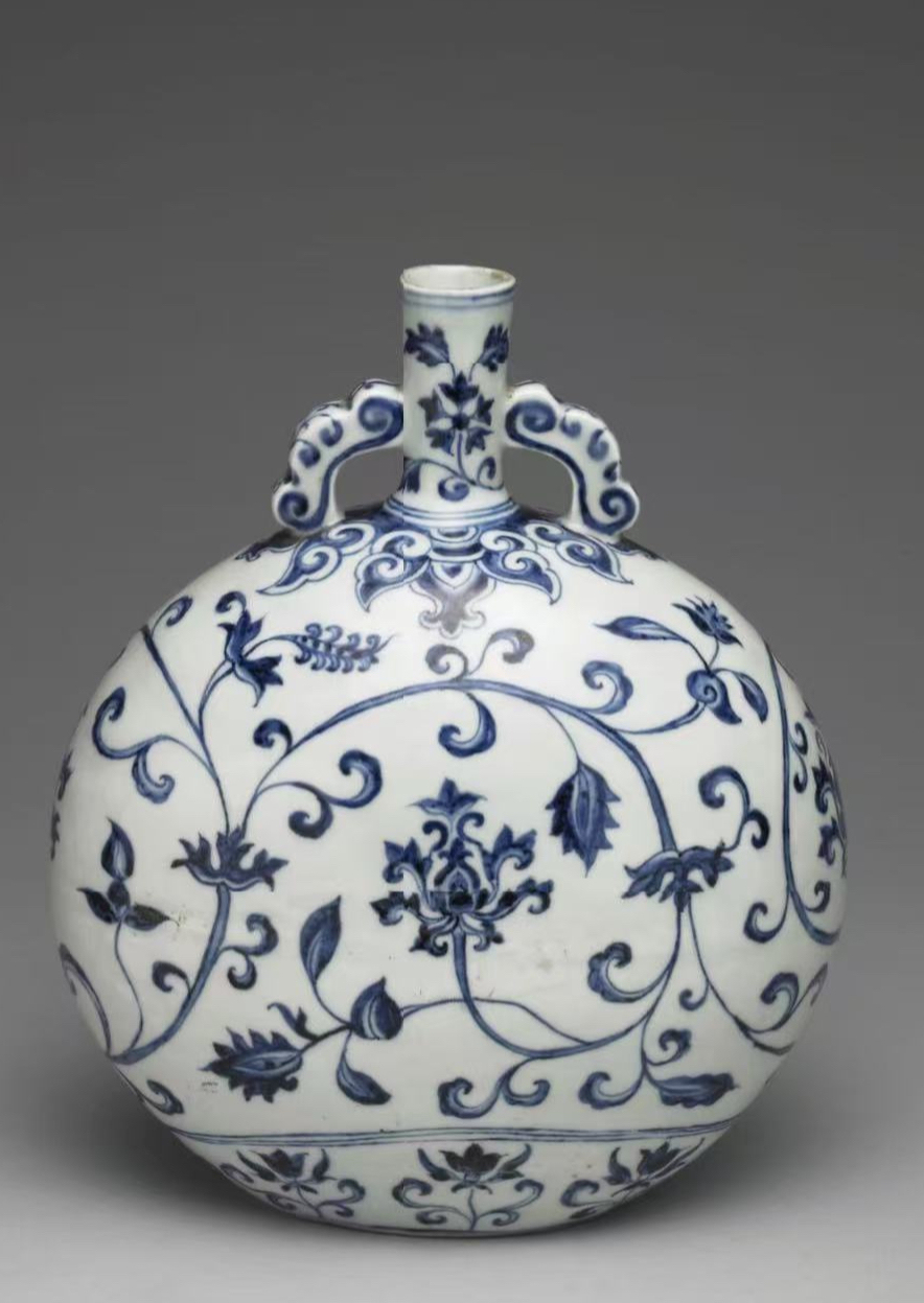 青花番莲扁壶