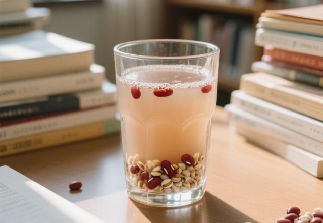 材料:红小豆 30 克、炒薏米 30 克(生薏米性凉,炒后更温和)、水 1000 mL。