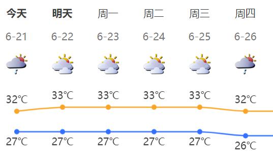 深圳气象台预报,今天我市阴天,有(雷)阵雨;温度 27 ℃ -32 ℃;南风 3 级别,沿海,高地和海区阵风。 6 水平左右;相对湿度 65%-90%。
