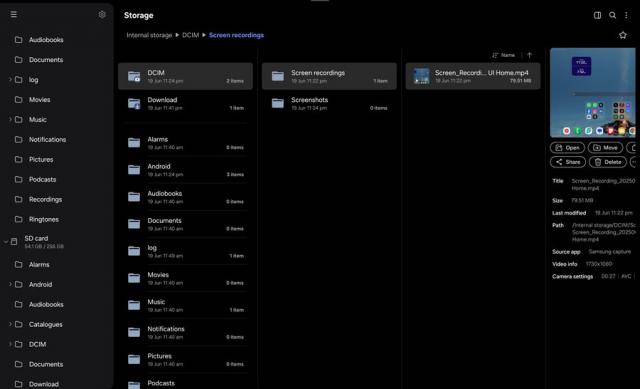 就功能而言,One UI 8 全新升级文档管理应用测试版“我的文件”(My Files),新界面更加直观,三星还加强了文件夹结构,使文件路径更加清晰,布局更加合理,使用户更容易定位文件。