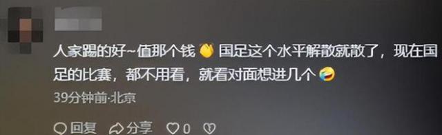 网友不断要求“解散国家队”的根本原因是“不甘心”。中国投入了这么多资金,结果养出了一群只知道自我保护的“残疾战士”。你现在说的市场、努力和顶级都是诡辩。