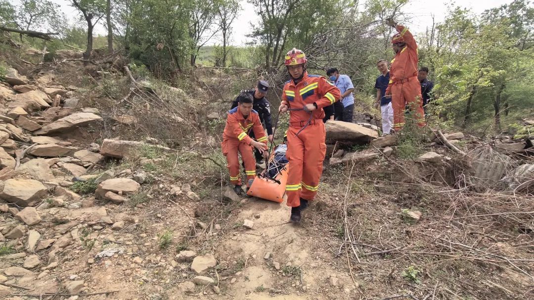 用担架固定男子,然后转出山山。