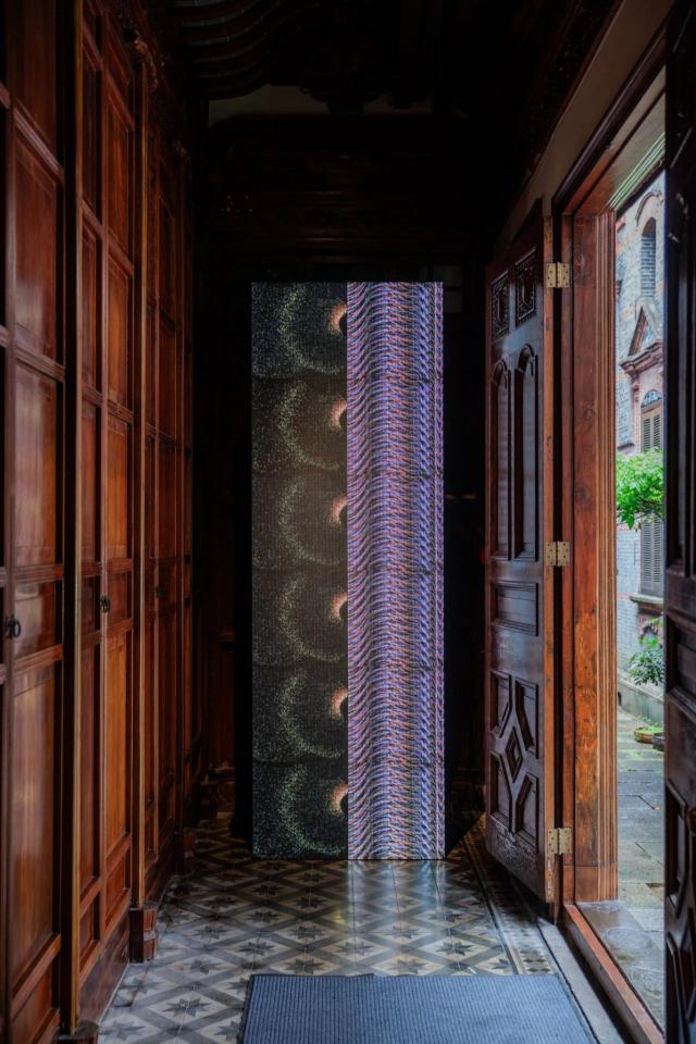展览中,新媒体艺术作品被用作对上海吴昌硕纪念馆“收藏”的历史和艺术的回应。其中,艺术家念子轩的作品《年纹》被选中 AI 数字化艺术表现风吹稻田和水波,并采集黄浦江水声作为声音配乐,以当代的方式呈现建筑所蕴含的传统文化意境。